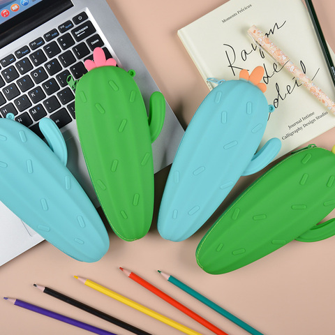 2025シリコンペンシルケース漫画かわいいサボテン大容量ジッパーペンシルケース学生文房具収納バッグ