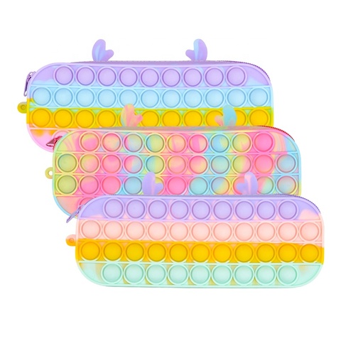 中国工場プレスバブルポップ小銭入れ枝角レインボーカラフルシリコンペンシルケースポップバッグサプライヤー